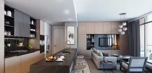 Ellington’s DT1 is a luxury skyscraper that’s ichbuilt to the exact construction standards. The building is located in Downtown Dubai and is equipped with 24/7 video surveillance cameras, multiple large swimming pools and fitness centres. Wood is a key element in the design of the apartments – both the guest rooms and the kitchens are clad with the material. Prices start at AED 1,179,828, with all units being fully complete and ready to move into.