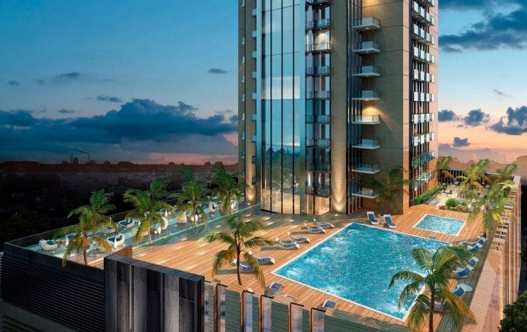 O2 Tower in Jumeirah Village Circle is a new project in partnership with the National Engineering Bureau. The complex was completed in 2021. The tower has 38 floors and features studios and one-bedroom apartments. Units range in size from 401 sq. ft. (37 sq. m.) to 945 sq. ft. (88 sq. m.), and prices range from AED 309,000 (USD 84,000) to AED 750,000 (USD 204,000).