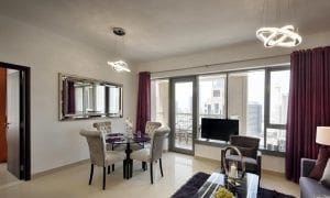 29 Burj Boulevard Towers is a 45-storey complex in the center of Dubai. The project consists of two buildings. Itsconstruction was completed in 2013. The complex is distinguished by its original architecture, the building resembles the Rockefeller Center in New York due to its art deco style. The towers have different heights and floors made entirely of glass. The high podium is complemented by decorative elements with Arabic motifs. These architectural ideas of Frank Williams & Partners were implemented by Emaar Properties. At 29 Burj Boulevard Towers apartments with 1, 2 and 3 bedrooms, as well as studios are for sale.