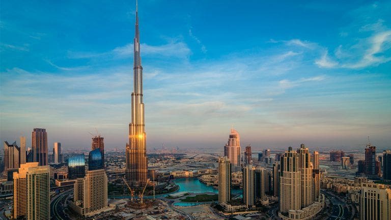 Here is the highest multi-storey building in the world – the Burj Khalifa, and the Dubai Fountain, which is one of the world’s largest fountains. The area is home to the largest shopping mall in the world at a size of 1.2 million square meters – Dubai Mall.
