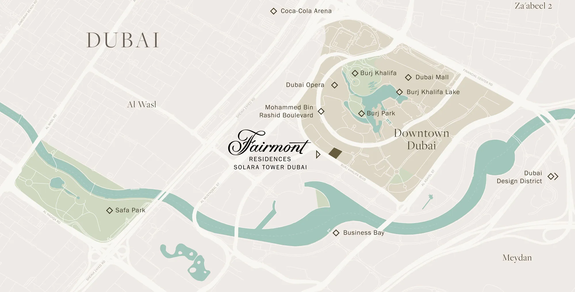 Fairmont Residences Solara Tower Dubai is located in Downtown Dubai, Dubai.