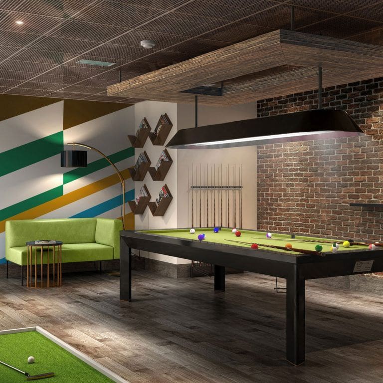 In this multi-storey apartment complex, a unique infrastructure has been created. There are landscape pools on the roofs of the two towers.