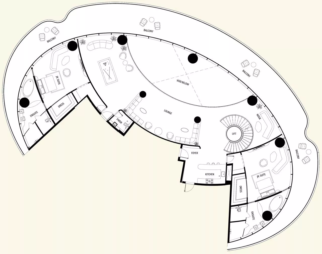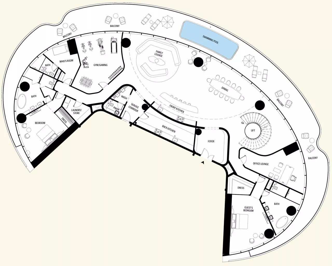 You can choose from a collection of 2-3 bedroom apartments and 4-7 bedroom penthouses.