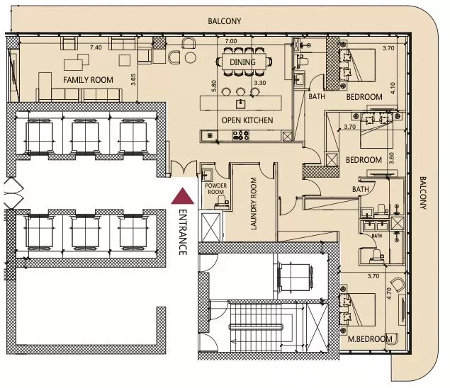 The area of the proposed units ranges from 354 sq. ft to 7,090 sq. ft. Each residence comes with a private balcony, whilst select layouts will have a maid’s room and an office. The micro units will span across the lower floors and large 3-bedroom apartments will be on the upper levels. You will be able to take advantage of 1 or 2 parking spaces, depending on the acquired unit.