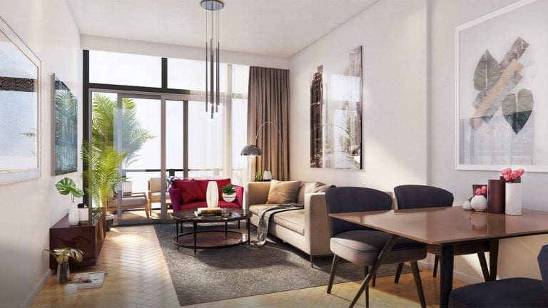 Studio’s can be purchased at AED 350,000 and a one-bedroom apartment costs AED 355,000. Prices for two-bedroom apartments start from AED 570,000 and apartments with three bedrooms cost from AED 695,000.