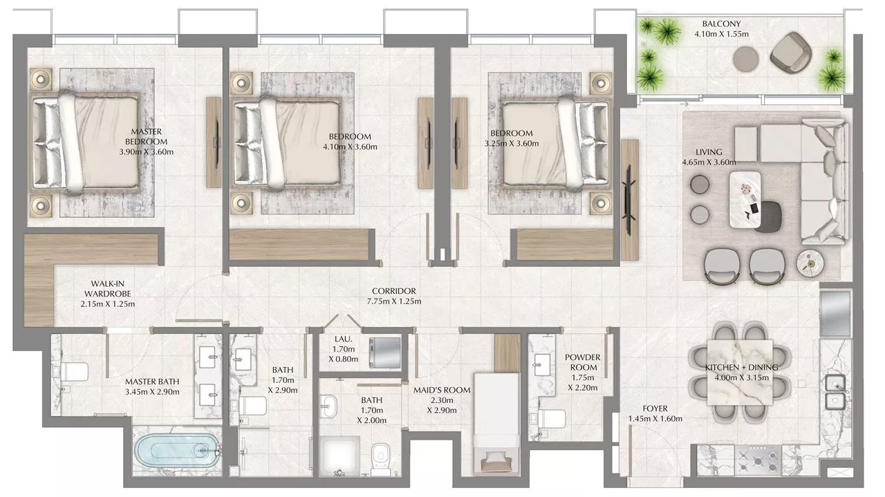 The distinctive features of the stunning penthouses on the upper floors are the private studies and panoramic views of the waterfront. Meanwhile, the townhouses will feature spacious rooftop terraces overlooking the Creek, the famous Dubai skyline and the Creek Island Promenade.