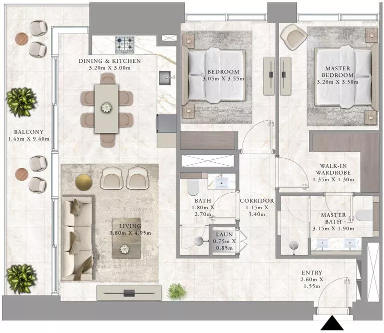 Owning a property here opens the door to excellent rental opportunities, with a gross annual ROI of 6.8% for 1-bedroom units and annual rental yields estimated at AED 80K (USD 22K).