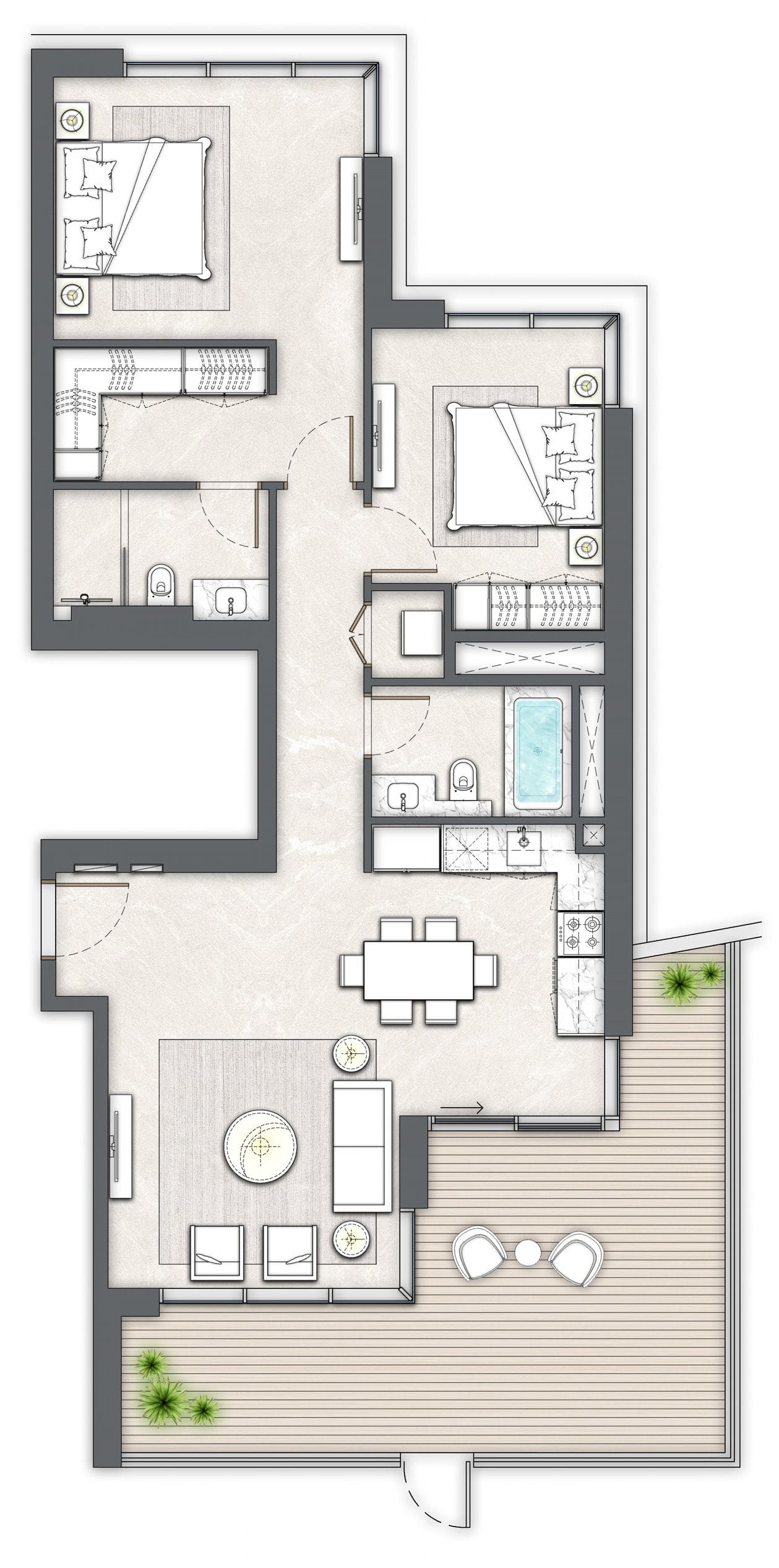 All THE COVE 2 residences will come with balconies or terraces overlooking a vibrant promenade and the iconic Dubai skyline. Owners of penthouses, duplexes and 3-bedroom apartments will also have a maid’s room with an attached bathroom for their utmost convenience. Select layouts will feature private gardens, where homeowners will be able to enjoy the utmost privacy and a serene atmosphere.