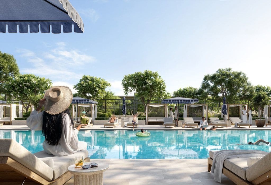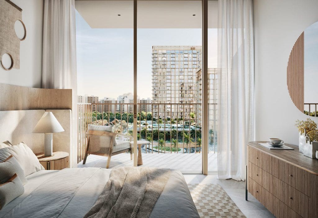 The starting price of a 1-bedroom apartment and a 3-bedroom townhouse in VALO is AED 1.8M (USD 490K) and AED 4.86M (USD 1.3M), respectively.