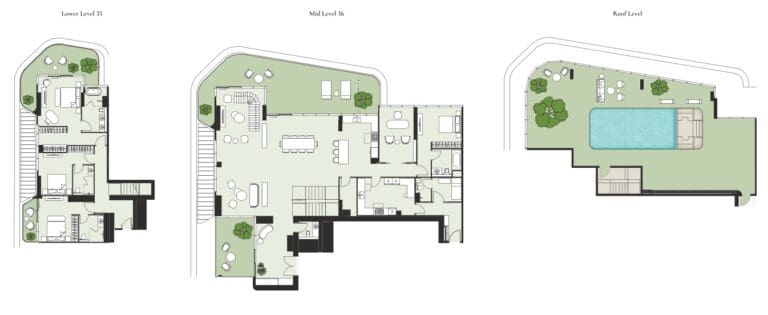 The tower offers 1–3BR apartments and a limited collection of 4BR duplex penthouses, sized 741–7,765 sq.ft.