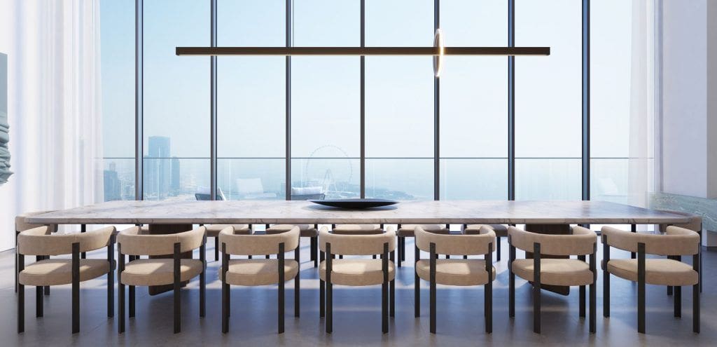 W Residences at Dubai Harbour – Tower 3 offers luxury apartments (1–4 bedrooms), duplexes (2–4 bedrooms), penthouses (5 bedrooms including rooftop with pools), and a presidential suite.