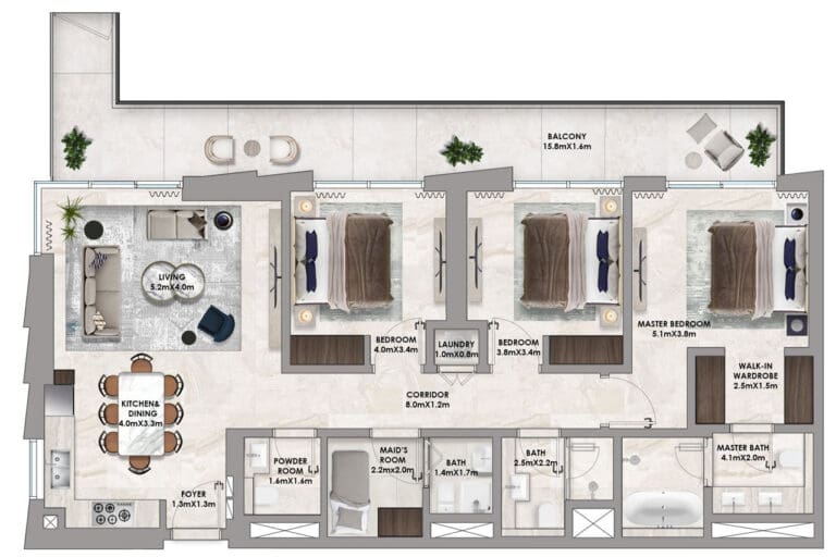 Address Residences Dubai Hills Estate offers 1-3 bedroom apartments.