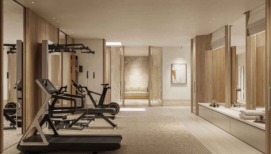 Embrace a lifestyle of peak wellbeing with an in-home gym and personal spa complete with a hammam, sauna, and massage room for ultimate rejuvenation, just steps from your living space.
