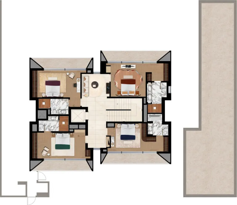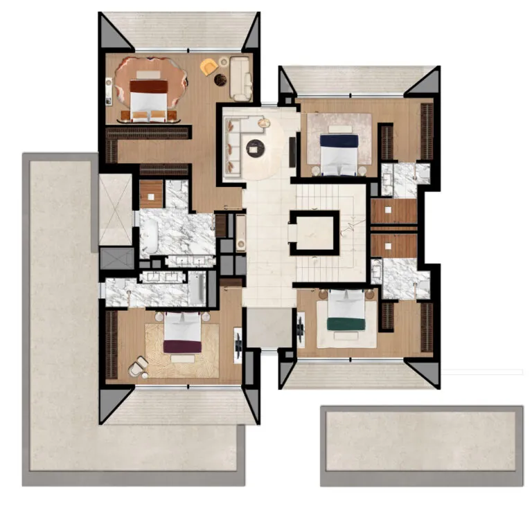 The project offers luxurious 5-bedroom villas with two types available, featuring areas of 6,185 sq. ft and 7,820 sq. ft on spacious plots.