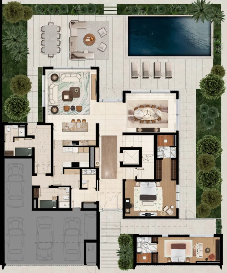 Enjoy separate swimming pools tailored for adults and children, ensuring a perfect aquatic experience for all ages. The thoughtfully designed pools provide a relaxing oasis for adults and a safe, fun environment for kids to splash and play.