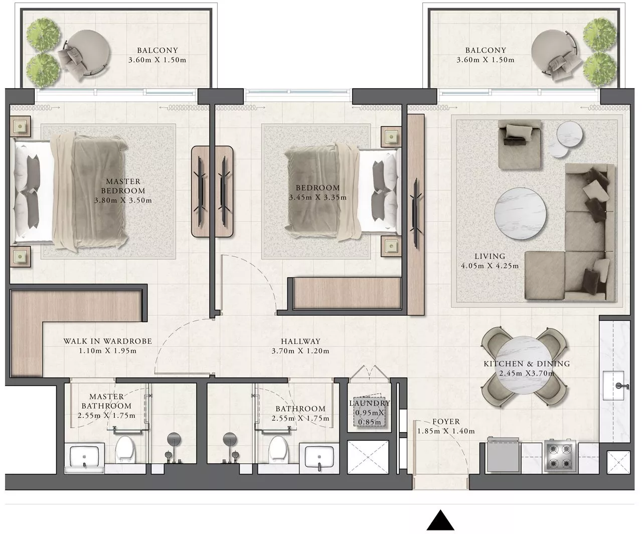 The living area of the properties ranges from 680 sq. ft to 2,011 sq. ft, and each residence will feature 1-2 balconies or a terrace, whilst 3-bedroom layouts will also come with a maid’s room. The design of the interiors will be executed in neutral tones, and complemented with porcelain tiles and laminate shutters with melamine carcasses.