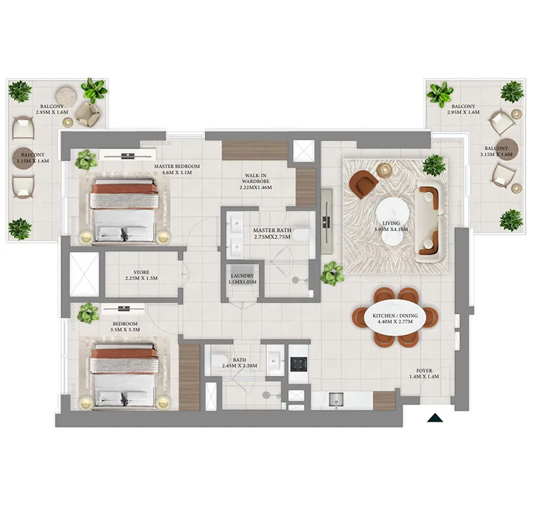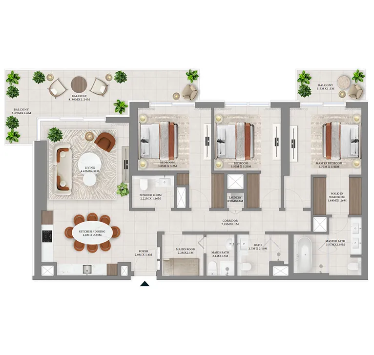 Every unit is meticulously designed with additions like a walk-in wardrobe and a laundry room for ultimate convenience. Select apartments further boast a powder room, a storage room, a maid’s room and a private terrace, providing residents with a truly unparalleled living experience.