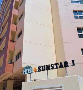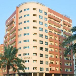 HDS Sunstar 1 is an 11-storey residential complex located in International City, Dubai. The building’s façade was designed using beige and brown hues.