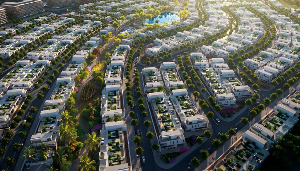 Located in Dubai Investments Park, DAMAC Riverside is a residential project implemented by DAMAC Properties. There are a total of 1,900 sophisticated 4-5 bedroom townhouses available for acquisition. The architectural design of the residences was inspired by the world’s most famous cities such as Rome, Paris, London, New York and Amsterdam. The size of the living spaces of these units vary, spanning from 2,297 to 3,407 sq. ft, distributed across two or three floors. The floor plans are thoughtfully designed to include a storage room, laundry room, garage and balconies. The 5-bedroom units additionally include a terrace and a maid’s room.