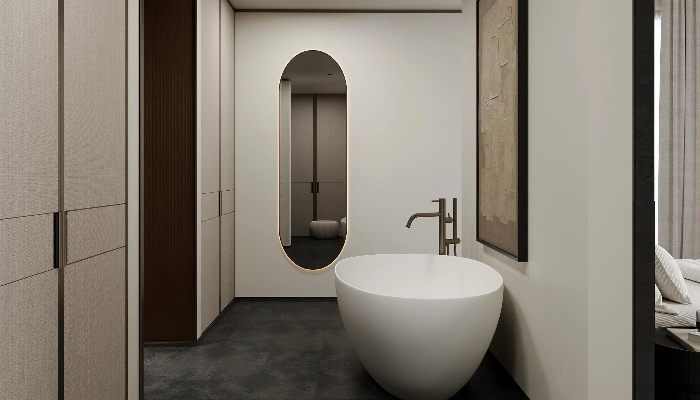 MAREA Residences offers 1–3 bedroom residences and penthouses, with bespoke layouts, sunlit interiors, spa-inspired bathrooms, open-plan kitchens and private terraces overlooking the Arabian Gulf.