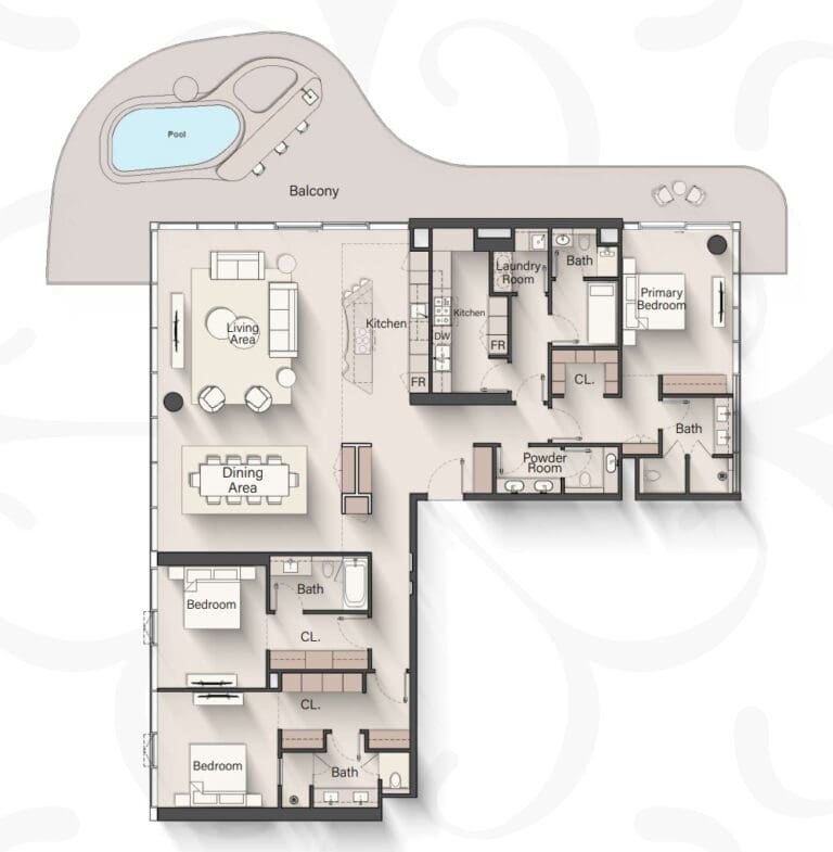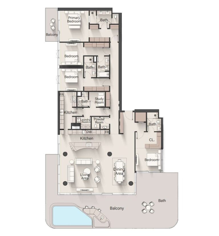 The Meriva Collection by Ellington offers 1–4BR apartments and exclusive 3- and 5-bedroom Signature Penthouses across six residential buildings. Unit sizes range from 832 sq.ft to 7,100 sq.ft, with a variety of layouts including corner, dual-aspect, and penthouse configurations.