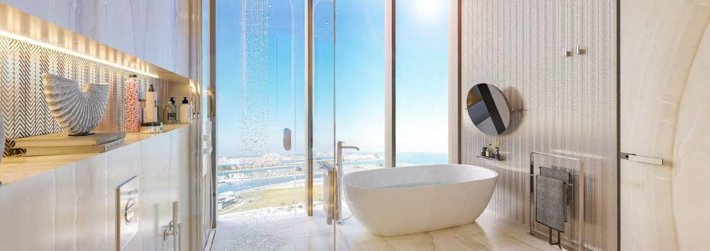 Habtoor Grand Residences is a premium addition by Al Habtoor City Real Estate Development LLC to the Habtoor Grand Resort, Autograph Collection. Located in Dubai Marina, the deluxe seafront complex comprises 51 floors and offers direct access to the private beach. You may choose from a variety of luxury 2-4 bedroom apartments, 3-4 bedroom townhouses and 5-bedroom penthouses. All residences boast fantastic views of the sea, Bluewaters Island, Palm Jumeirah and Dubai Marina. The property sizes range from 2,023 sq. ft to 6,738 sq. ft, ensuring plenty of space for comfortable living and guest entertainment.
