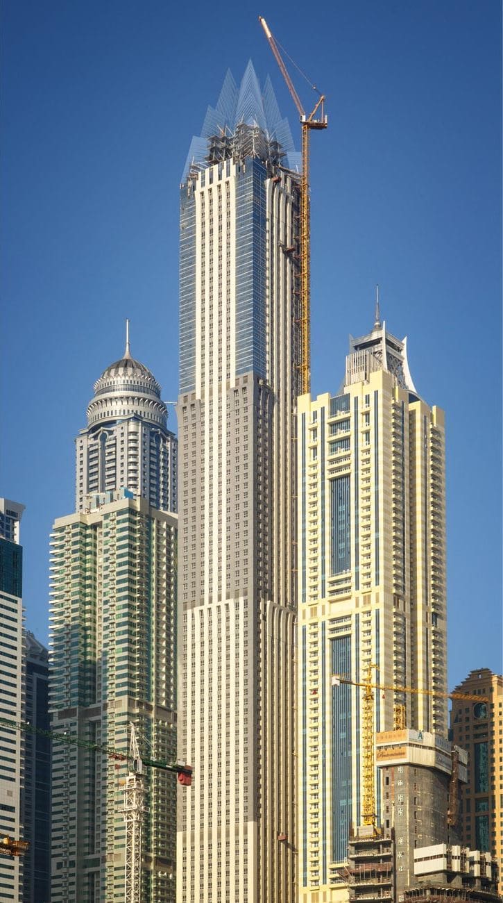 Marina 101 is a luxury residential complex being built in Dubai Marina. The developer of the project was Sheffield Holding, and the architectural consultant was the National Engineering Bureau. The construction of the 101-story tower began in 2006 and is now nearing completion. At the top of the skyscraper there is a 45-meter crown and its full height is 427 meters. When fully completed, Marina 101 will become the second tallest building in the UAE after the Burj Khalifa.