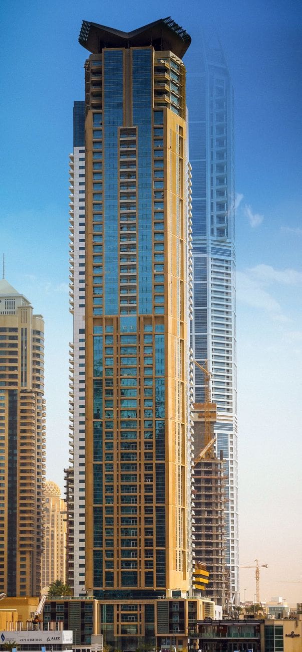 Marina Heights Tower is a 55-storey residential complex located in Dubai’s dynamic Dubai Marina district. The project by the developer Abdul Salam Al Rafi Group was commissioned in 2006 and the architectural consultant was RMJM Dubai. The height of the building in the complex is 208 meters.