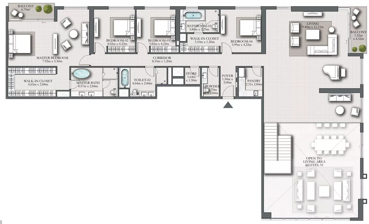 The development will boast close proximity to LIV Marina, which is a 44-storey upscale residential tower by LIV Developers. The building will be home to a huge amenities deck with an indoor and outdoor gym and yoga studios, a music room, conference and study facilities, a virtual golf room, a gaming and PlayStation room and more.