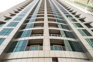 Marina Torch Tower is a premium residential project by the developers, Select Group and Khatib&Alami Dubai architectural bureau. This skyscraper has a height of 985 feet (300 meters) and includes 79 floors and a three-level underground parking lot. The tower is one of the five tallest residential buildings in the world. Construction lasted four years and was completed in 2011. Floors 1 to 4 are occupied by commercial premises and public areas. There are a total of 682 units in the building, including apartments with 1-3 bedrooms and duplexes with 4 bedrooms. Properties range in size starting from 880 square feet.