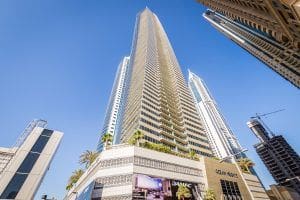 The Ocean Heights residential complex is an 83-storey skyscraper with an unusual architectural design, located in the dynamic Dubai Marina district. The building was commissioned in 2010 and was designed by Damac Properties, with Aedas Limited as the project architect. Ocean Heights’ collection of properties includes 519 residential units: 1, 2 and 3 bedroom apartments with views of the Arabian Gulf, the marina and Palm Jumeirah Island. All residences have panoramic windows, balconies, fully equipped kitchens and bathrooms. Apartments in the complex range in size from 77 sq. m (826 sq. ft), and cost from AED 1,050,000 (USD 286,000).