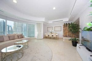 Dubai Marina is one of the fastest developing and most prestigious areas in Dubai, and is considered to be both a residential and holiday resort destination. The distinctive feature of Dubai Marina is its large canal, which is more than two miles long. There are numerous restaurants and cafes along the waterfront, as well as walking, cycling and jogging paths. One of the biggest advantages of living in Dubai Marina is its convenient location, as it has easy access to Al Sufouh Rd and Sheikh Zayed Rd, which connects all seven emirates. Dubai International Airport and Al Maktoum International Airport are just 30 minutes away.