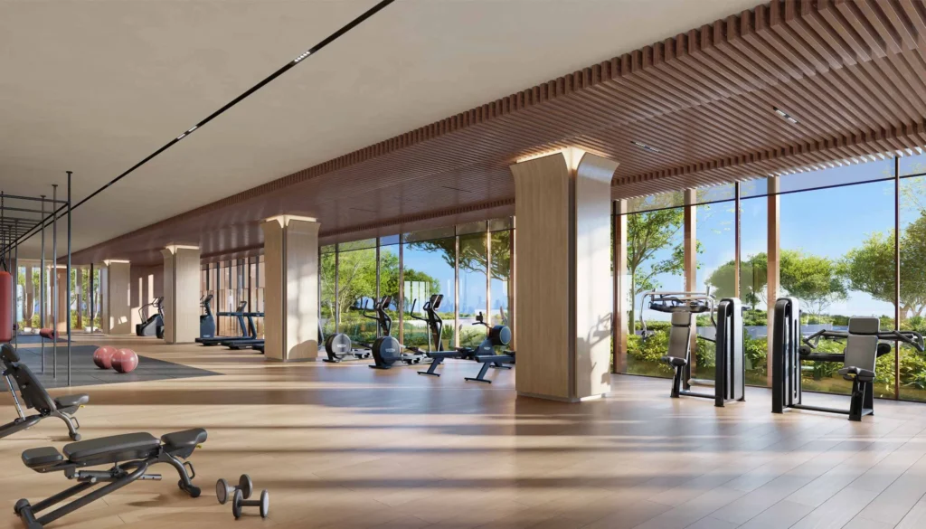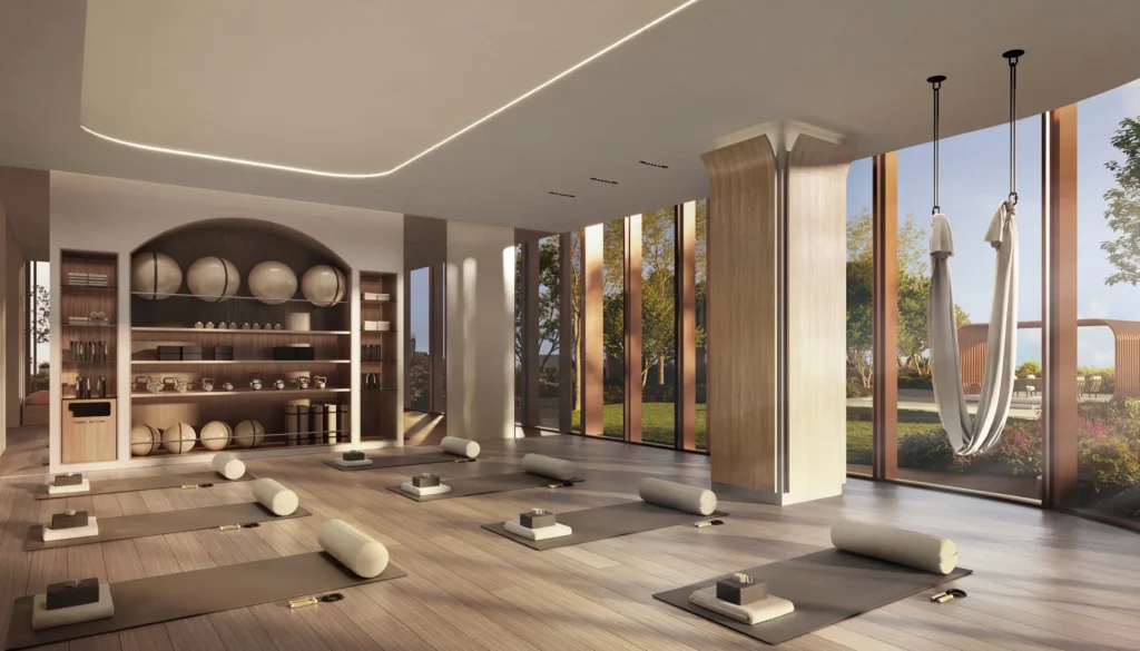 Dedicated Gym, Pilates/Yoga Studio, outdoor yoga decks, and landscaped podiums for relaxation and vitality.