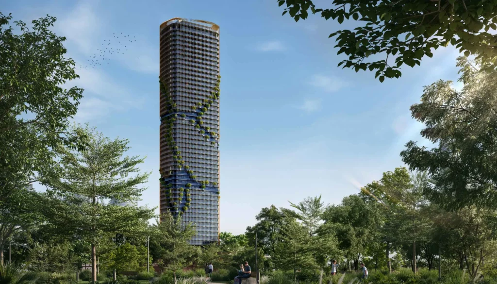 Kanyon is a sculptural residential tower in the Forest District of Dubai Maritime City. Developed by Beyond, it presents 1–3BR apartments and 2BR + maid units from 798–2,400 sq.ft, starting at AED 2.4M.