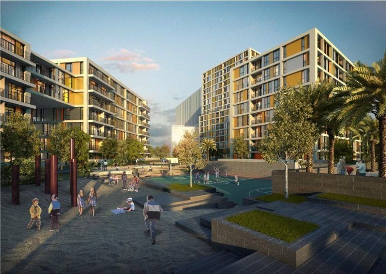 The complex is situated within walking distance of Medicina Pharmacy, Pizza Hut, and the Dubai Production City Entrance 2 bus stop. City Centre Me’aisem Shopping Centre and MovEsmart – Furniture can be reached within a five-minute drive of the residences, and there is a hair salon and W Mart Supermarket located within a 10-minute drive.