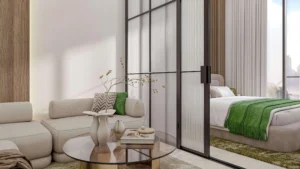 The mid-rise residential complex Golf Terrace Residences by ASAK, located in Dubai Production City, has 105 fully equipped studios, 1BR, and 2BR apartments with sizes running from 476 to 1,710 square feet. Prices kick off from AED 688K with a 30/70 payment plan and handover scheduled for October 2027. The project enjoys above-average 3.2 m ceiling heights, open views toward Jumeirah Golf Estates, community parks, or the Marina skyline, and is classified as a rental-ready investment with anticipated yields of ~6–8%.