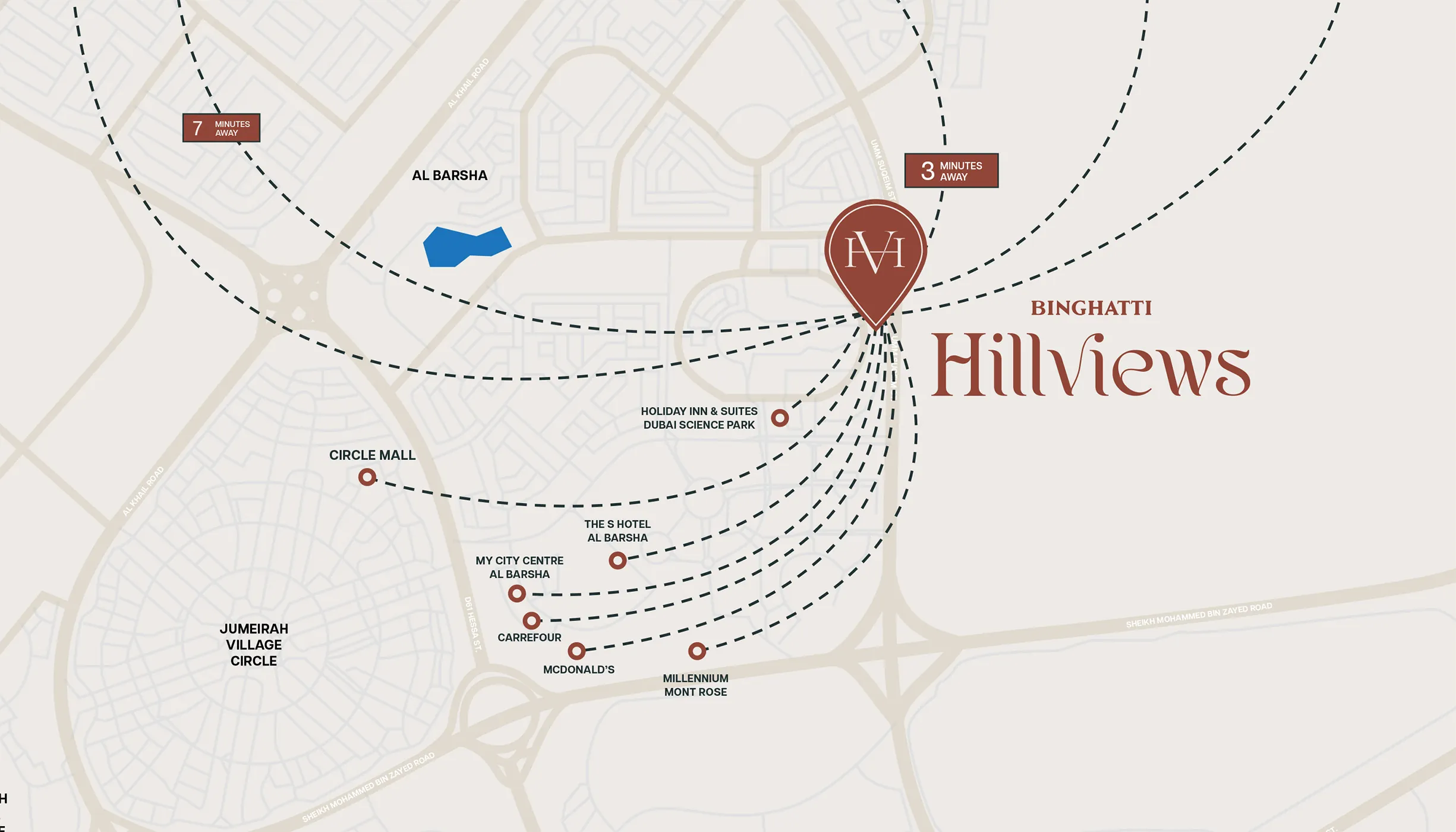 Hillviews is an exclusive residential project, which is located in Dubai Science Park. The development company of the complex is Binghatti Developers. The anticipated date of the project’s completion is Q1 2026.