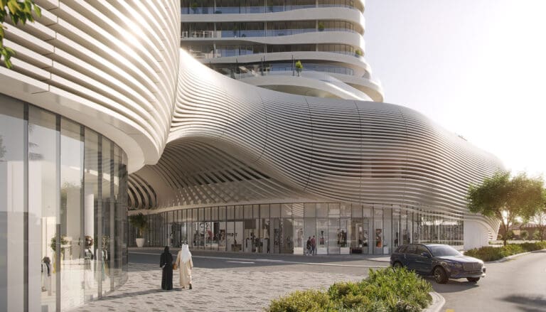 The initial price for a 1-bedroom luxury apartment in the development — AED 1.6M (USD 436K). The developer offers 40/60, 50/50 and 60/40 payment plans.