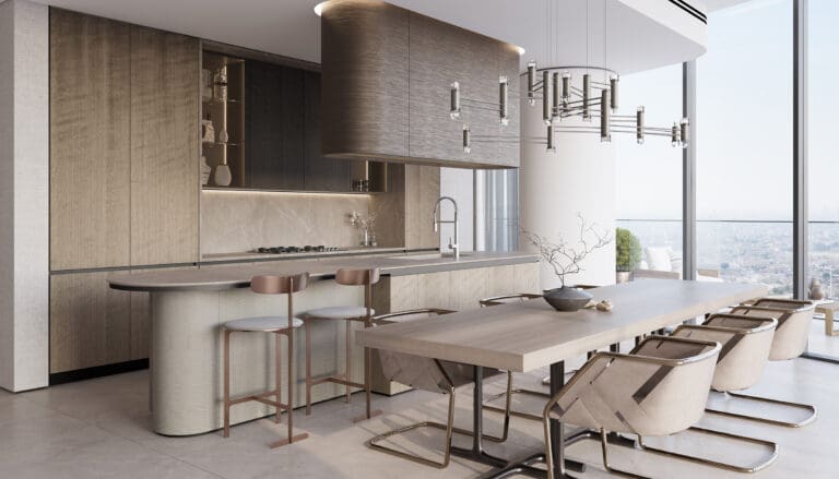 The complex consists of two residential towers that house a collection of studios, 1–3 bedroom apartments, 3–5 bedroom duplex townhouses and Sky Villas. The total number of units in the project is 857. These are Dubai’s only residences with private indoor pools.
