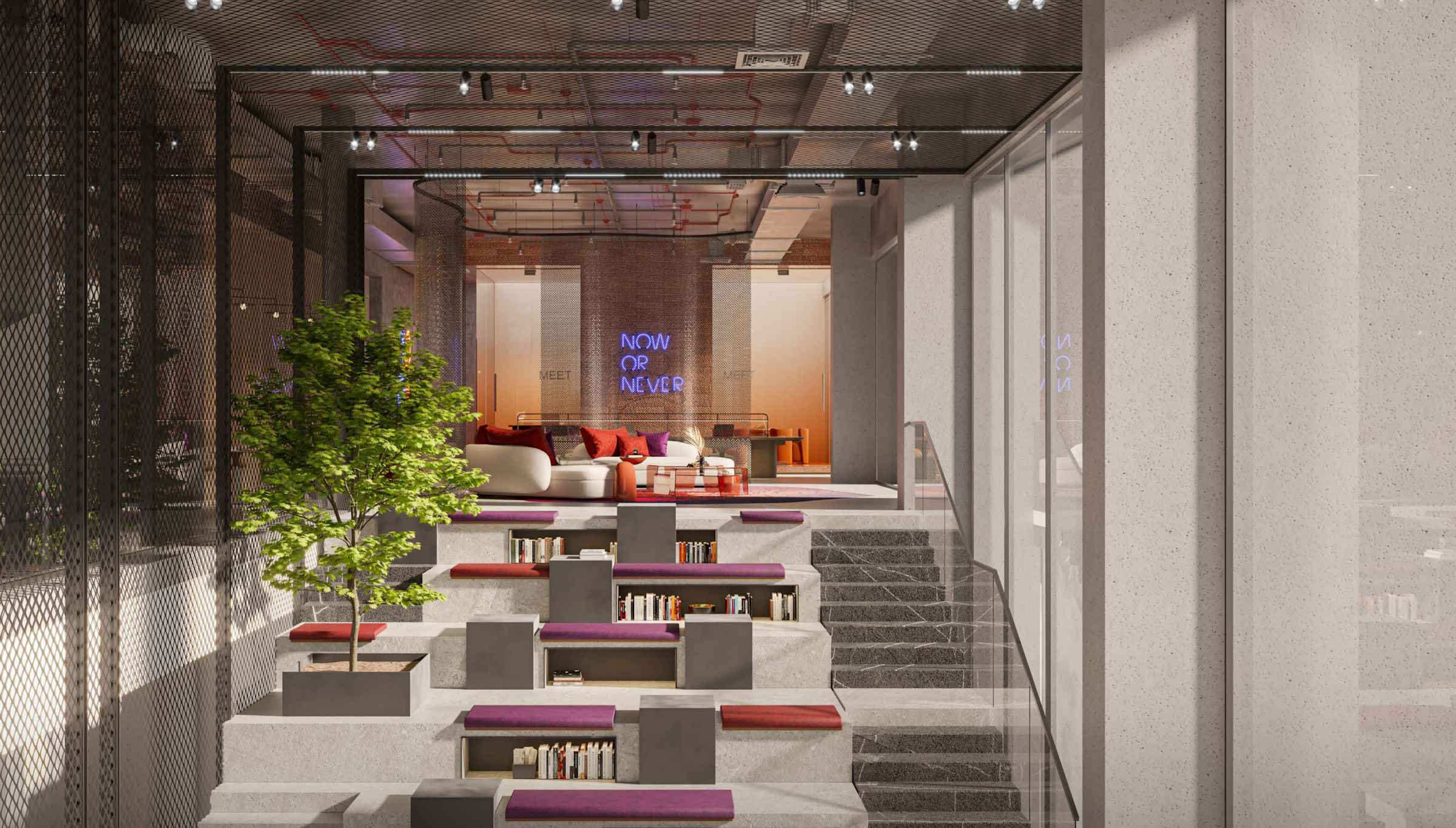 The project revolves around a lively boulevard that ties together five buildings and establishes communal social areas that foster everyday involvement, innovation, and connection.