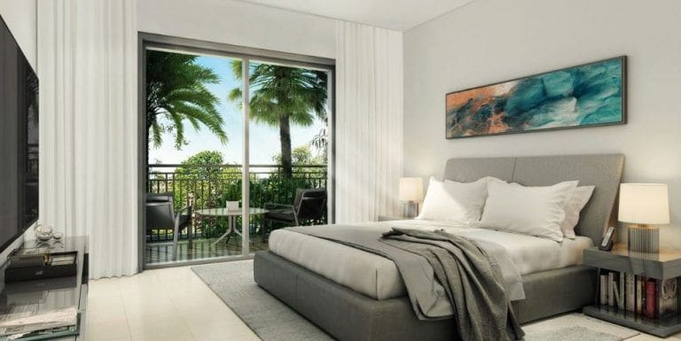 Saffron offers 3 and 4-bedroom residences with individual lots and two parking spaces. The two-storey townhomes feature comfortable floor plans and panoramic windows overlooking the golf course. The exquisite interior design of each room is decorated in bright colors, in the interior only quality materials have been used, and a combination of wood and marble gives the style of living elegance. The minimum price for a three-bedroom townhouse is AED 1,433,000 (USD 390,000).