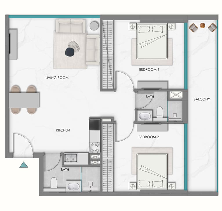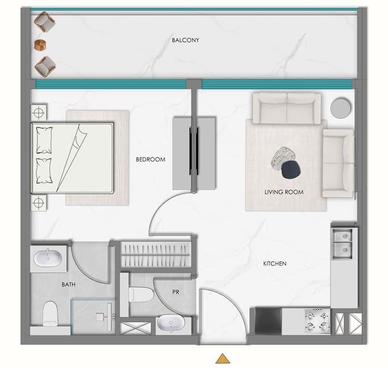 Studios start from AED 599K (T&C apply). Prices for 1-bedroom and 2-bedroom apartments are available upon request.