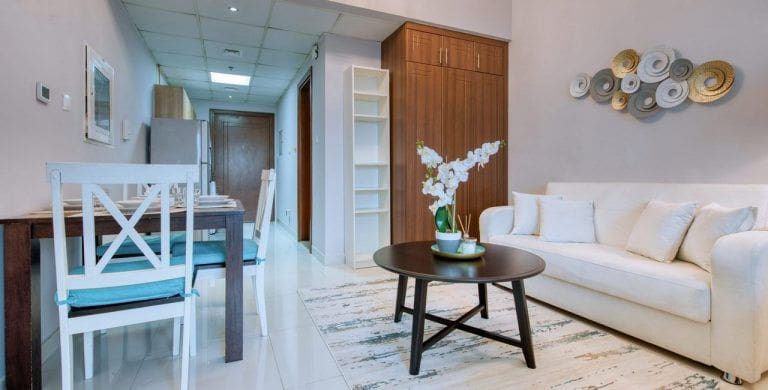 Many tenants opt for furnished apartments in the ten-high rise buildings of the Elite Sports Residences. Here one can find studios or apartments with 1-3 bedrooms, with access to a number of residential facilities such as swimming pools, saunas, a state-of-the-art gym and a spa. Furthermore, there are barbecue areas, a 24-hour security and concierge service, and underground parking with allocated spaces for each resident. Features of Elite Sports Residences include prayer rooms in each tower and the availability of backup power generators. The minimum cost of renting a studio in this complex is AED 20,000 (USD 5,500) per year.