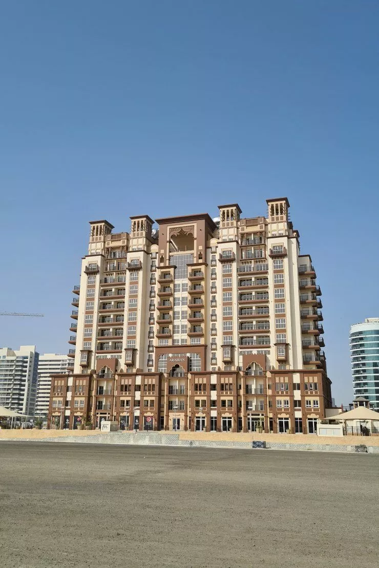 The Arabian Building is a 14-storey building with 192 residential units – studios and apartments with 1 to 3 bedrooms. The studios have a large bedroom with built-in wardrobes and an adjoining bathroom. Studios also have a kitchenette with fitted cupboards and a private balcony overlooking the Emirate.