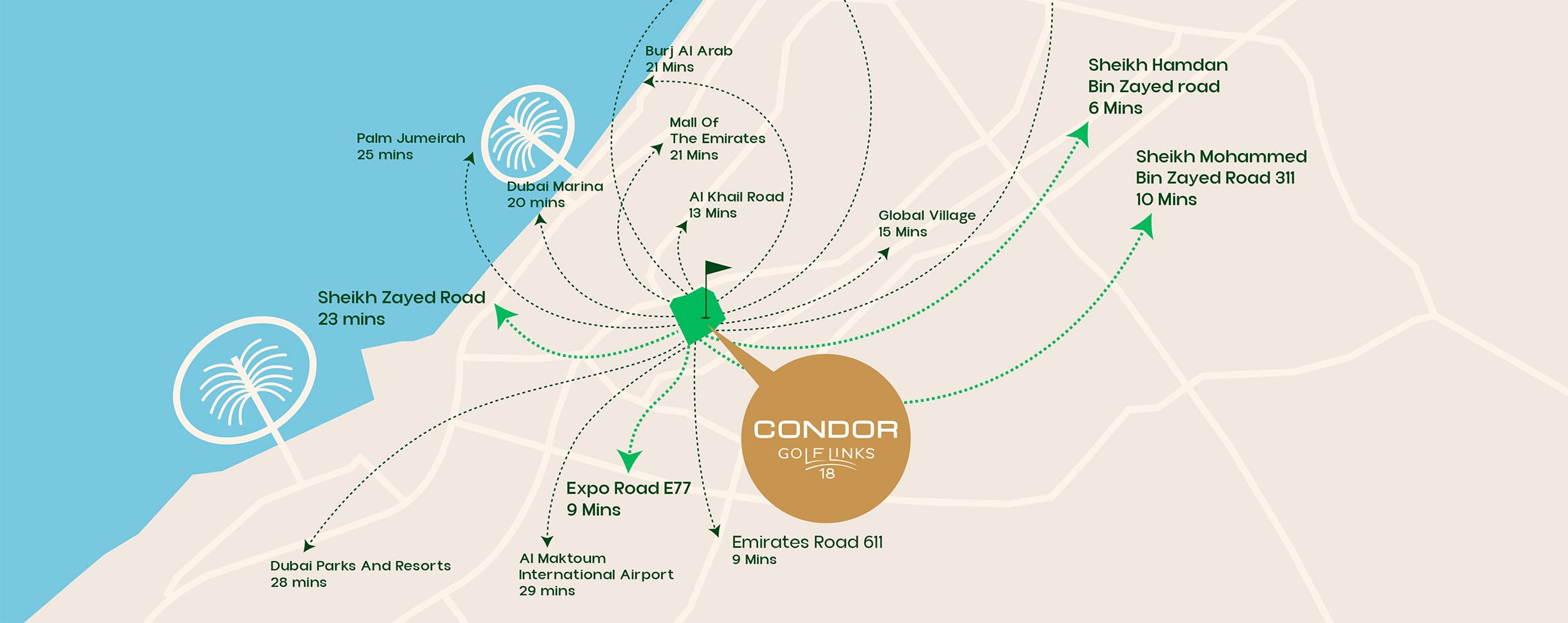 Occupants at Golf Links 18 can enjoy golf course living with breathtaking views of scenic surroundings. The convenient location in the area of Dubai Sports City provides easy access to sports facilities, including Dubai International Cricket Stadium and The Els Club.