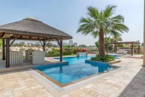 Novelia is a gated residential community located in Dubai Sports City, which is part of the larger Victory Heights community. Residents have easy access to Sheikh Mohammed Bin Zayed Road and Hessa Street. There are a total of 98 five- to six-bedroom villas that vary in architectural styles, such as the Mediterranean, classic European, and Spanish Andalusian. Villas have spacious bedrooms, modern bathrooms, built-in cabinets, walk-in wardrobes, fully equipped kitchens, dining rooms, living rooms, and balconies that overlook the nearby golf course.