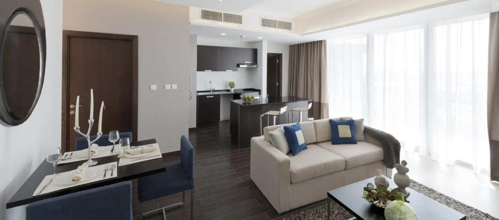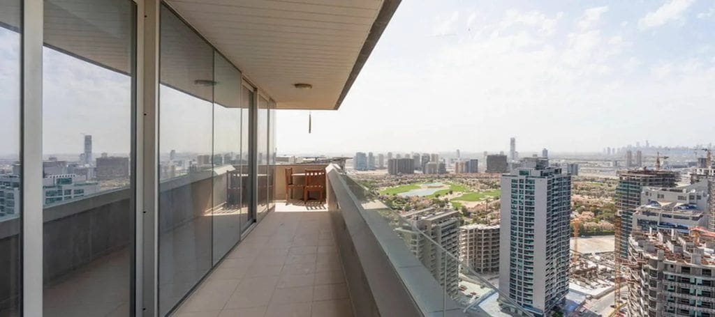 The Matrix is a 34-storey residential complex located in Dubai Sports City. The project was developed by the First Group and was commissioned in 2014. The Matrix won the ‘Best Residential Architecture’ award from CNBC. Properties include studios and one- to two-bedroom apartments that feature beautiful views of the Dubai Cricket Stadium and the Els Golf Course. Studios have built-in wardrobes, kitchens, bathrooms, and dining areas. Apartments have spacious living rooms and bedrooms with ensuite bathrooms. All units are fitted with high-quality furniture.