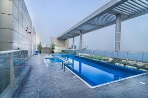 The Medalist is a 15-storey residential complex located in Dubai Sports City. The project was developed by Golden Circles Development Limited. Properties include studios and one- to four-bedroom apartments. Studios are equipped with fitted kitchens, modern bathrooms, living areas, and balconies. Apartments feature living rooms, dining rooms, balconies, semi-enclosed built-in kitchens, and ensuite bathrooms. Two- and three-bedroom apartments have two balconies and spacious living rooms and dining areas. Four-bedroom apartments also have staff accommodations and laundry areas. All units have marble floors and built-in wardrobes.