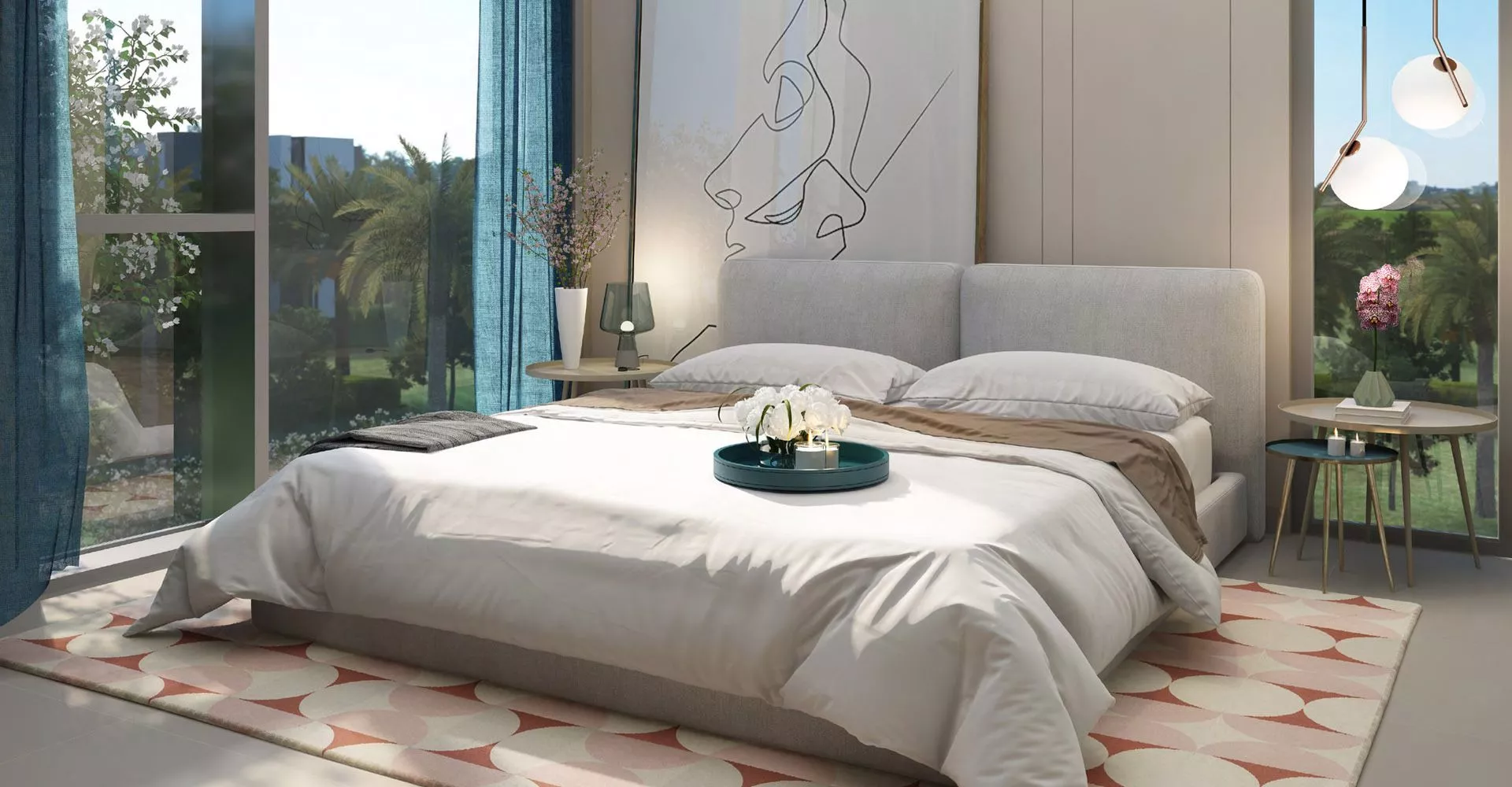 The three-bedroom, 1,937sq. ft (180 sq. m) townhouse includes four bathrooms, a maid’s room, kitchen, living room, two balconies, and utility rooms. And there is also a parking space for two cars. The starting price is AED 2,710,000 (USD 738,000).