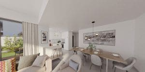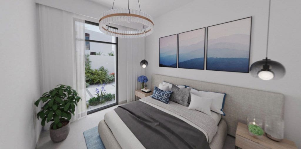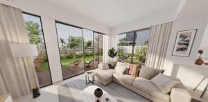 Cherrywoods project from the famous United Arab Emirates developer, Meraas, is a new residential complex in the central part of DubaiLand. This cozy family community consists of modern townhouses. Spacious duplexes with 3 and 4 bedrooms are attractive with a comfortable room layout, thoughtful design and exclusive interior decoration. The project of 900 individual apartments will be delivered in 2021. Cherrywoods gated complex offers townhouses with 2 or 4 apartments within each. Living space average sizes are: 3 bedrooms – 207.45 sq. m (2,233 sq. ft); 4 bedrooms – 244.71 sq. m (2,634 sq. ft).